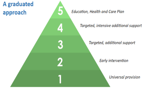 At Yate Academy, we have a graduated response to students’ needs. All teachers receive training on what this looks like for students in our school and their roles and responsibilities in this process. The diagram below shows this process: